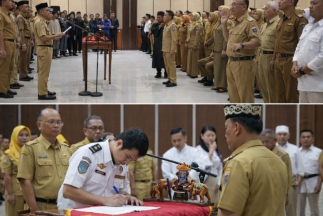 Posisi tersebut termasuk Pimpinan Tinggi Pratama, Administrator, Pengawas, Kepala Puskesmas, hingga jabatan fungsional. Acara diadakan di gedung sesat Agung Bumi Sai Wawai, Senin (02/03/2026).