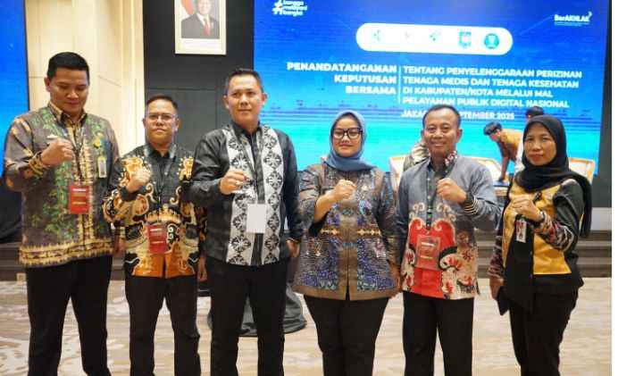 Acara tersebut adalah penandatanganan Keputusan Bersama Lima Menteri dan Kepala Lembaga terkait penyelenggaraan perizinan tenaga medis dan kesehatan di kabupaten/kota melalui Mal Pelayanan Publik (MPP) Digital Nasional.