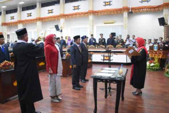 Setelah pembacaan SK, prosesi pengucapan sumpah/janji pun dilaksanakan di hadapan rohaniwan, disaksikan oleh para anggota dewan dan hadirin. Ketua DPRD yang baru, Ria Hartini, menyampaikan rasa terima kasih atas kepercayaan yang diberikan.