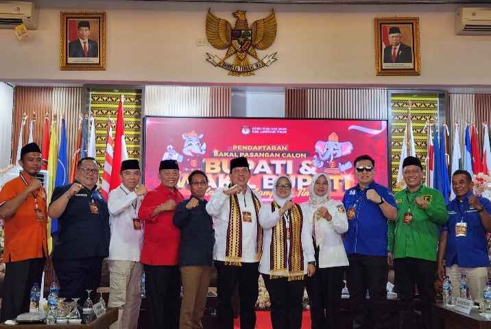 WARTA MANIA, LAMPUNG TIMUR – Pasangan bakal Calon Bupati dan Wakil Bupati Kabupaten Lampung Timur Ela Siti Nuryamah dan Azwar Hadi hari ini mendaftar sebagai pasangan calon Bupati dan Wakil Bupati Lamtim ke kantor KPU Lampung Timur, Rabu (28/08/2024).