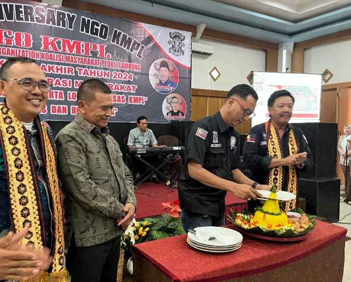 WARTAMANIA — Non Governmental Organization (NGO) Koalisi Masyarakat Peduli Lampung (KMPL) Kota Metro melaksanakan Anniversary yang ke-3 sekaligus dengan mengusung tema “Menyerap Aspirasi Masyarakat , Integritas Konsisten Serta Loyalitas Asas KMPL” yang berlangsung di Ballroom Hotel Grand S’kuntum, Minggu (22/12/2024)