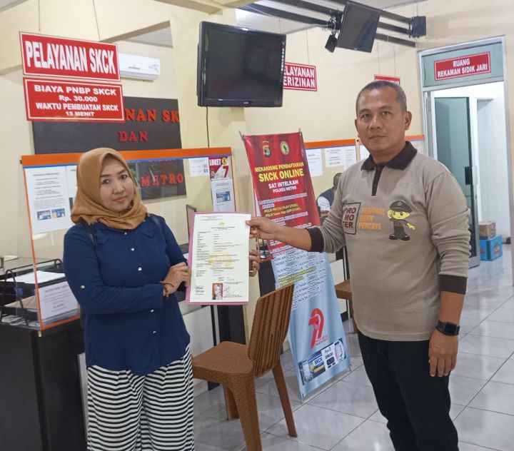 METRO LAMPUNG — Pelayanan Polres Metro Polda Lampung melalui Kaur Yan Min Sat Intelkam dalam pengurusan dokumen salah satunya Surat Keterangan Catatan Kepolisian (SKCK) sangat baik dan cepat. Hal ini dibuktikan oleh media ini saat mengantarkan Keluarga membuat SKCK untuk persyaratan melamar suatu pekerjaan, pada Selasa 05 Agustus 2025 di Polres setempat Jalan P. Diponegoro 6 Kota Metro Lampung.