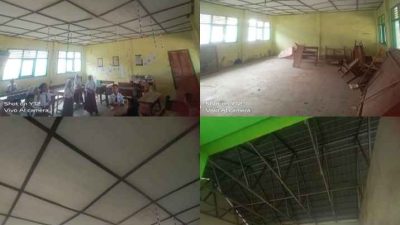 Ruang kelas anak-anak SDN 1 Banjarejo, Kecamatan Batanghari Lampung Timur sedang belajar miris Plafon seakan…